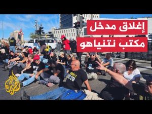 مشاهد مصورة توثق احتجاجًا يغلق مدخل مكتب نتنياهو في القدس للمطالبة بصفقة تبادل.