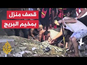أفاد مراسل الجزيرة باستشهاد سبعة فلسطينيين وإصابة خمسة عشر آخرين جراء قصف قوات الاحتلال الإسرائيلي منزل عائلة خليفة في مخيم البريج وسط قطاع غزة. وأضاف مراسلنا أن الأهالي والطواقم الطبية نقلوا جثامين الشهداء والجرحى إلى مستشفى العودة بمخيم النصيرات وتم تحويل مصابين إلى مستشفى شهداء الأقصى بدير البلح