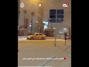 تسببت الأحوال الجوية المثلجة في العديد من المدن التركية بوقوع انزلاقاتٍ مروريةٍ واصطداماتٍ على الطرقات.