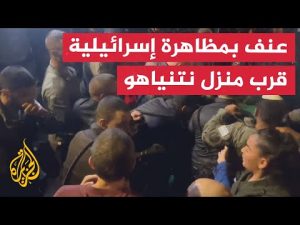 بث ناشطون ومنصات إسرائيلية على مواقع التوصل الاجتماعي، مساء اليوم، مشاهد لمحاولات الشرطة الإسرائيلية فض مظاهرة قرب منزل رئيس الوزراء بنيامين نتنياهو. وتظهر المشاهد استعمال الشرطة للقوة في فض المظاهرة.
