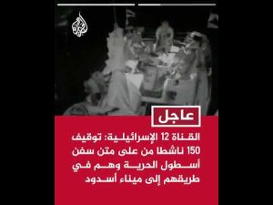 عاجل | القناة 12 الإسرائيلية: توقيف 150 ناشطا من على متن سفن أسطول الحرية وهم في طريقهم إلى ميناء أسدود