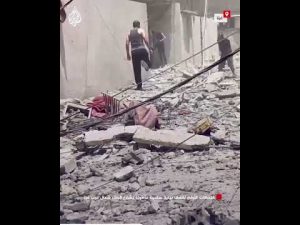 وتظهر المشاهد تصاعد الدخان من موقع القصف وعمليات نقل الضحايا والمصابين وسط حالة من الهلع بين السكان.