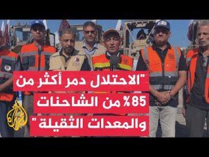 قال رئيس بلدية غزة يحيى السراج إن الاحتلال دمر أكثر من خمسة وثمانين في المئة من الشاحنات والمعدات الثقيلة في قطاع غزة خلال الحرب.