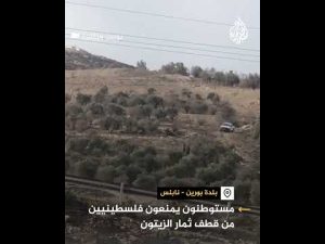 شاهد| مستوطنون إسرائيليون يمنعون فلسطينيين من قطف ثمار الزيتون