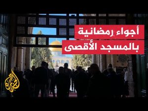 تداول ناشطون على مواقع التواصل مشاهد تظهر مسلمون يتجمعون في المسجد الأقصى خلال شهر رمضان المبارك ويؤدون الصلوات