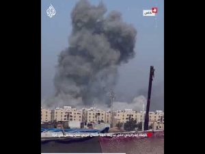 أظهرت مشاهد خاصة تصاعد أعمدة دخان كثيف جراء القصف الإسرائيلي العنيف على مدينة حمد شمال غربي خان يونس جنوبي قطاع غزة.