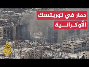 أفادت وزارة الداخلية الأوكرانية، بأن مدينة توريتسك شرق البلاد، تعرضت لأضرار بالغة حيث تواصل القوات الروسية هجماتها المتواصلة. وبثت الوزارة مشاهد جوية للمدينة، معلقة عليها بالقول: "المدينة تحترق.. والعدو يكثف هجماته". وأظهرت اللقطات مدينة تحترق، ودمارًا كبيرًا في المناطق السكنية.