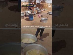 يعد مطبخ جماعي وجبات غذائية للنازحين السودانيين بمدينة الفاشر في ظل الأزمة الإنسانية المتفاقمة.