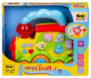 | لعبة قطار الحيوانات من بينجو توفر تجربة لعب تعليمية وتفاعلية. |