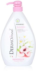| شاور جل برائحة الفرانجيباني والخوخ من درموميد يوفر تنظيفًا وترطيبًا للبشرة برائحة منعشة. |