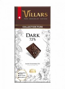 فيلارز تقدم شوكولاتة داكنة بنسبة 72%، تتميز بنكهتها الغنية والجودة العالية.