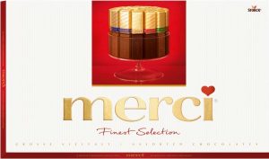 | Merci هي شركة ألمانية رائدة في إنتاج الشوكولاتة الفاخرة، معروفة بجودتها العالية ونكهاتها المتنوعة. |