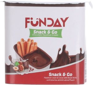 | فن داي بوبو تقدم أصابع خبز مع كريمة البندق والكاكاو، وجبة خفيفة لذيذة للأطفال والكبار. |