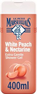 | جل للاستحمام بالخوخ الأبيض والدراق من لو بتيت مارسيليا يوفر تنظيفاً لطيفاً ورائحة منعشة. |