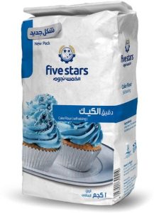 | الخمس نجوم تقدم دقيق الكيك، مثالي لتحضير الكيكات والحلويات بفضل جودته العالية. |