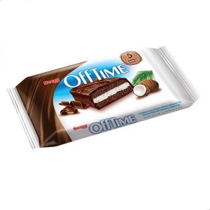 اوف تايم تقدم كيكة محشوة بجوز الهند ومغطاة بالشوكولاتة، وجبة خفيفة لذيذة ومشبعة.